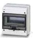 • Распределительные шкафы снабжаются прозрачной дымчатой дверцей с горизонтальной подвеской для каждого ряда устройств; дверца рассчитана на установку замка с ключом (код изделия 12 866)