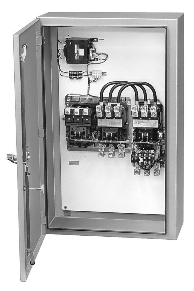 Пускатели реверсивные закрытого типа 107C состоят из автоматического выключателя защиты двигателя 140М, реверсивного контактора 104-C в ударопрочном литом корпусе IP66.