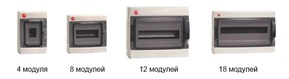 Настенные распределительные модульные щитки IP65 с дверцей