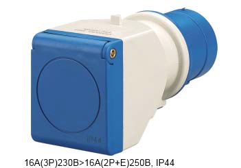 Переходник 16A(3P)230В>16A(2P+E)250В, IP44