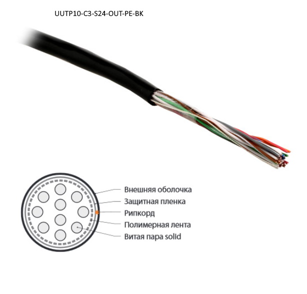 UUTP10/25/50/100-C3-S24-OUT-PE Кабели многопарные витая пара, неэкранированные (U/UTP), категория 3, 24 AWG, одножильные, внешние, PE Hyperline