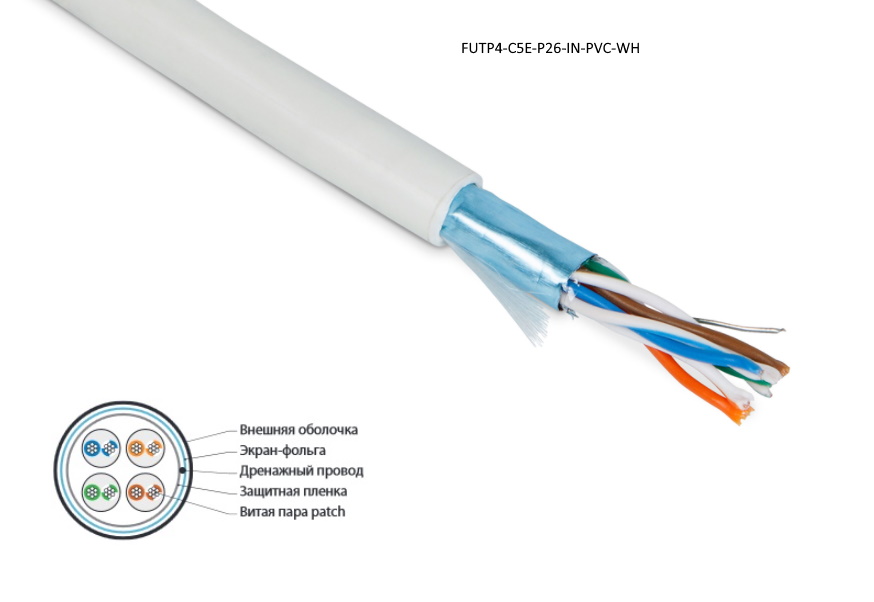 | 408979 | 236285 | FUTP4-C5E-P26-IN-PVC-WH-305 | Hyperline FUTP4-C5E-P26-IN-PVC-WH-305 Кабель витая пара, экранированная F/UTP, категории 5e, 4 пары (26 AWG), многожильный (patch), экран - фольга, PVC, –20°C – +75°C, белый | белый | упак 305м | Заказать |