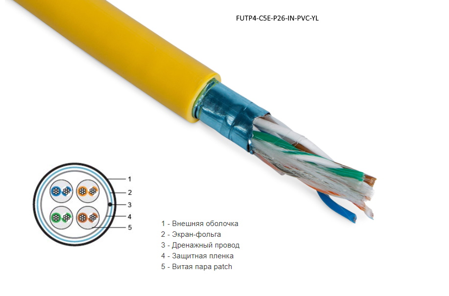 | 408989 | 445015 | FUTP4-C5E-P26-IN-PVC-YL-100 | Hyperline FUTP4-C5E-P26-IN-PVC-YL-100 Кабель витая пара, экранированная F/UTP, категории 5e, 4 пары (26 AWG), многожильный (patch), экран - фольга, PVC, –20°C – +75°C, желтый | желтый | упак 100м | Заказать |