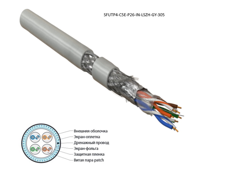 | 409036 | 236293 | SFUTP4-C5E-P26-IN-LSZH-GY-305 | Hyperline SFUTP4-C5E-P26-IN-LSZH-GY-305 (305 м) Кабель витая пара, экранированная SF/UTP, категория 5e, 4 пары (26 AWG), многожильный (patch), экран-фольга+мед. оплетка, LSZH, –20°C–+75°C, серый | серый | Заказать |
