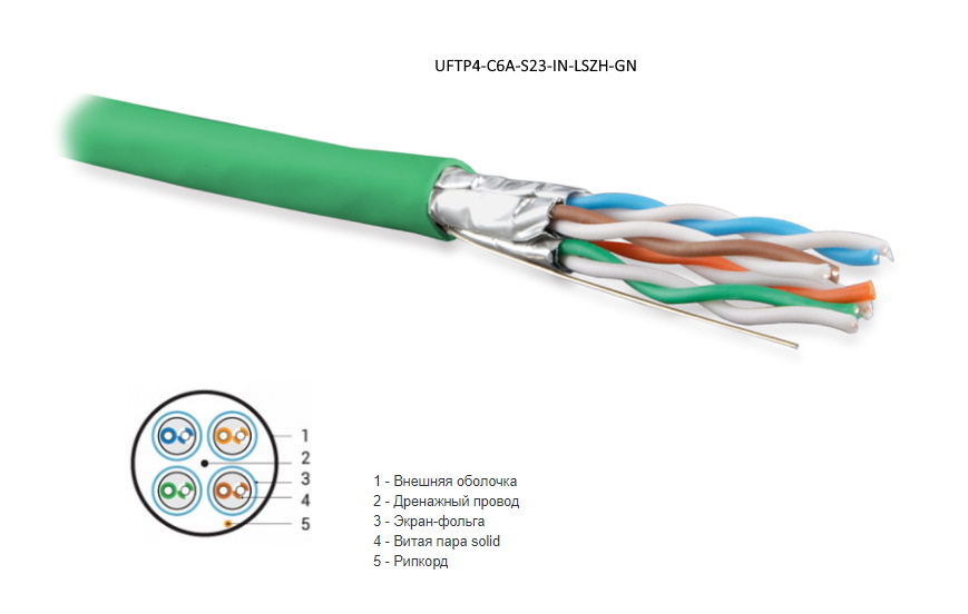 | 409140 | 445106 | UFTP4-C6A-S23-IN-LSZH-GN-500 | Hyperline UFTP4-C6A-S23-IN-LSZH-GN-500 (500 м) Кабель витая пара U/FTP, кат. 6a (10GBE), 4 пары (23AWG), одножильный (solid), каждая пара в экране, без общего экрана, нг(A)-HF, –20°C – +60°C, зеленый | зеленый | Заказать |