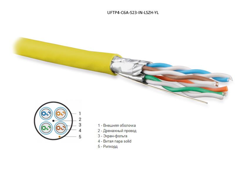 | 409144 | 445111 | UFTP4-C6A-S23-IN-LSZH-YL-500 | Hyperline UFTP4-C6A-S23-IN-LSZH-YL-500 (500 м) Кабель витая пара U/FTP, кат. 6a (10GBE), 4 пары (23AWG), одножильный (solid), каждая пара в экране, без общего экрана, нг(A)-HF, –20°C – +60°C, желтый | желтый | Заказать |
