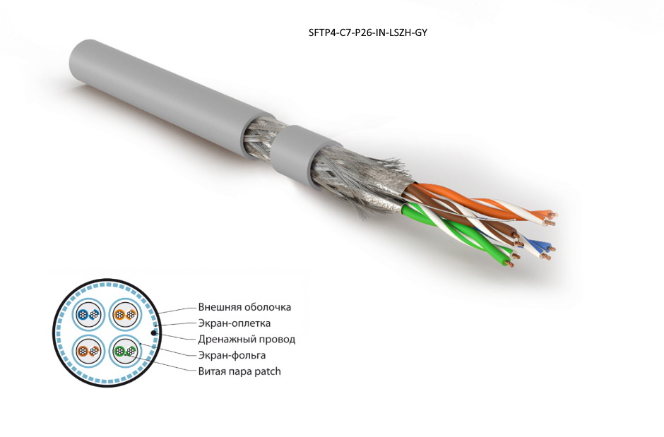 | 409195 | 445150 | SFTP4-C7-P26-IN-LSZH-GY-500 | Hyperline SFTP4-C7-P26-IN-LSZH-GY-500 (500 м) Кабель витая пара, экранированная S/FTP, категория 7 (600 MHz), 4 пары (26 AWG), многожильный (patch), LSZH, нг(A)-HF, серый | серый | Заказать |