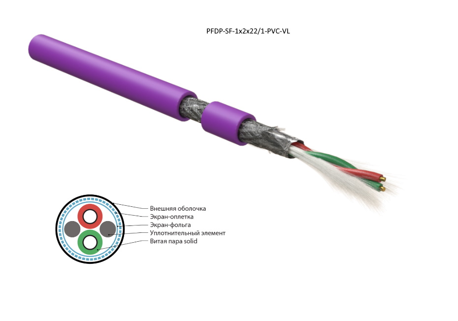 Кабель для шины PROFIBus-DP, 1x2x22 AWG, однопроволочные жилы (solid), SF/UTP, PVC, фиолетовый