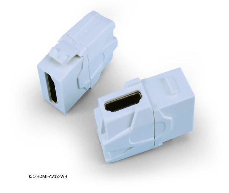 Вставка формата Keystone Jack с проходным адаптером HDMI 2.0 (Type A), long body (29.7 мм), ROHS, KJ1-HDMI-AL18-WH
