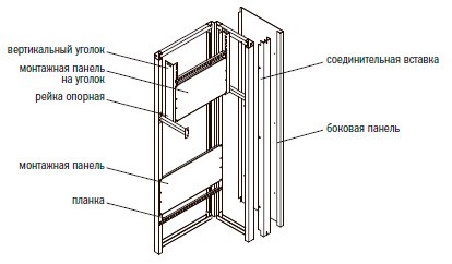 С наружных боковых сторон корпуса -на вертикальные стойки. При монтаже нескольких корпусов в единый блок - на вертикальные стойки с наружных боковых сторон блока