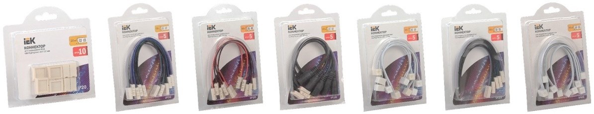 Коннекторы предназначены для соединения светодиодных лент. Коннекторы IEK обеспечивают любое желаемое пользователем соединение ленты без пайки.