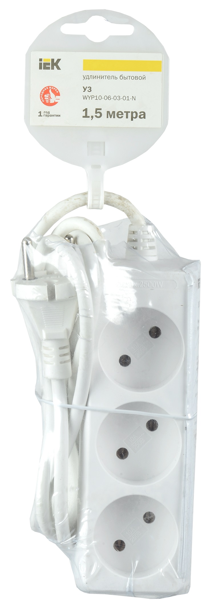 | 389599 | WYP10-06-03-01-N | Удлинитель У3 3 места 2P/1,5 метра 2х0.75мм2 10А/250В IEK | Заказать |
