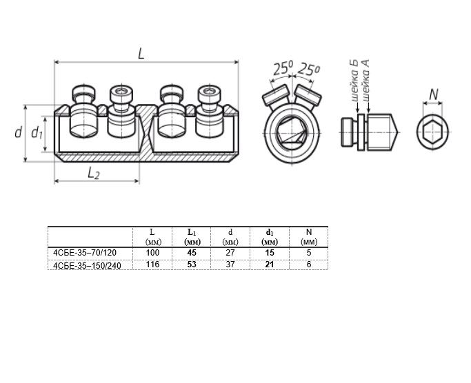 Диапазон сечений (мм2 ): 70-120; 150-240