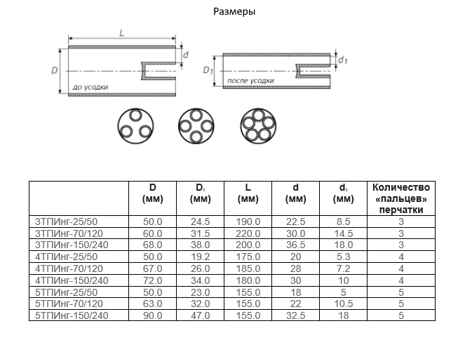 | Код | Артикул | Тип | Количество «пальцев» перчатки | Диапазон сечений | Заказать |