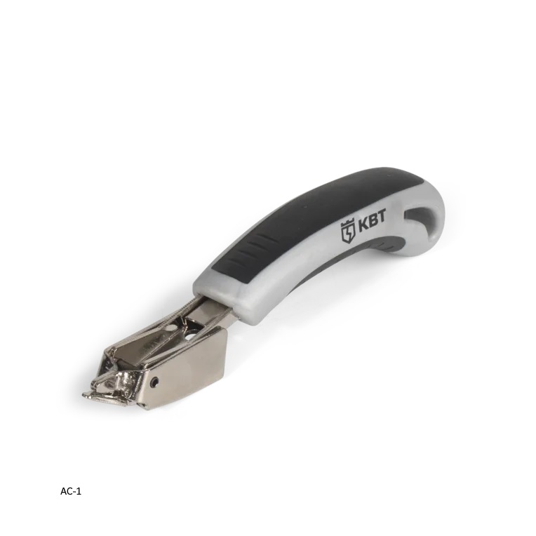 Оснащен фиксатором для надежного зажима скобы (по типу плоскогубцев)