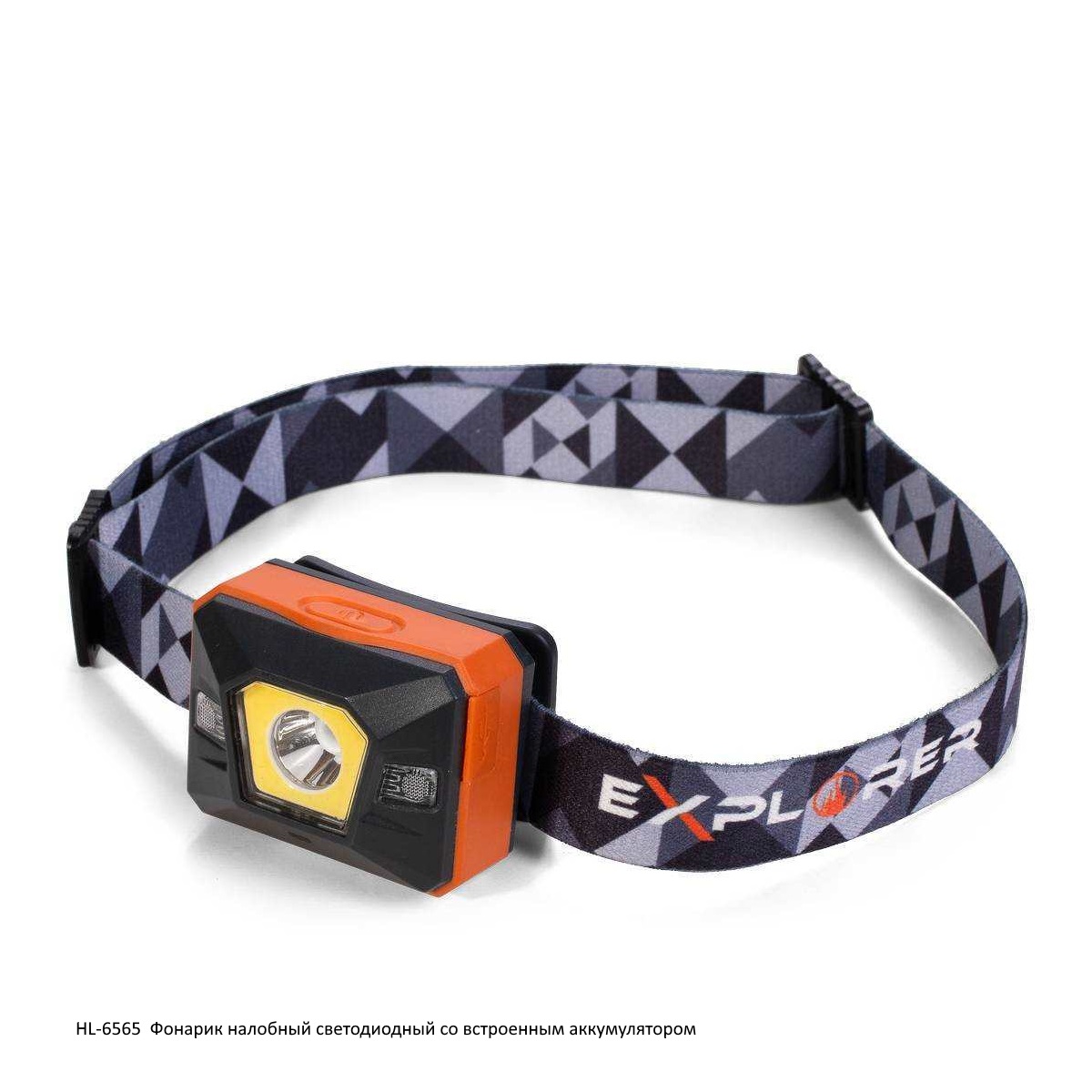 HL-6565 Фонарик налобный светодиодный со встроенным аккумулятором, серия EXPLORER