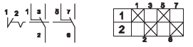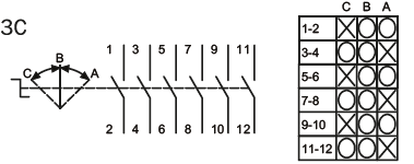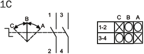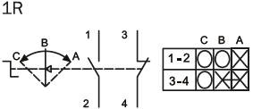 Команда «пуск-стоп» для переключателей с пружинным возвратом из А в В и фиксируемым положением в запираемом С |