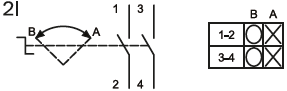 Переключатель с 3-мя положениями, запираемый в центральной позиции с пружинным возвратом в положение В |