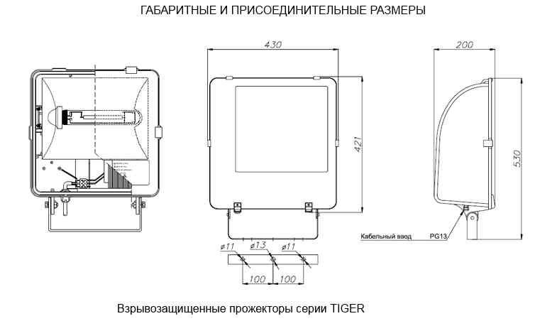 Взрывозащищенные прожекторы серии TIGER устанавливаются внутри помещений, на улице в потенциально опасных зонах в присутствии взрывоопасных и воспламеняемых газов и пыли.