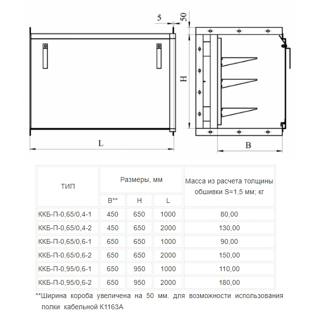 | ККБ-П-0,65/0,6-1 | 650 | 650 | 1000 | 90,00 |