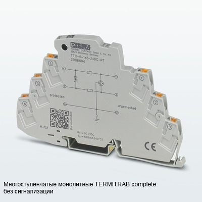| 355914 | 2906806 | Устройство защиты от перенапряжений - TTC-6-2-24DC-PT | Устройство защиты от перенапряжений для зависящих от сопротивления измерительных сигналов. | Заказать |