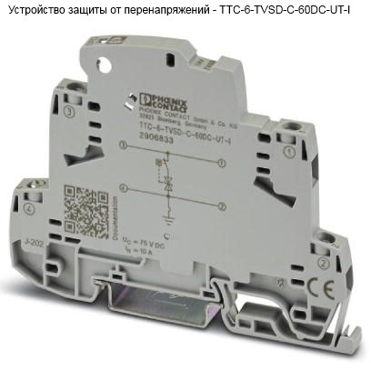 | 356023 | 2906850 | Устройство защиты от перенапряжений - TTC-6-TVSD-C-60DC-PT-I | Устройство тонкой защиты от перенапряжений со встроенным индикатором состояния для сигнального проводника с заземленным опорным потенциалом. | Заказать |