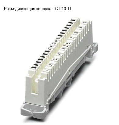 | 356209 | 2765356 | Разъединяющая колодка - CT 10-TL | Разъединяющая колодка LSA-PLUS, для установки защитного модуля CTM и CT 10. Исполнение: 10 сдвоенных проводников, размер A: 124 мм. | Заказать |
