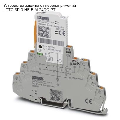 | 356154 | 2907847 | Штекерный модуль для защиты от перенапр-й - TTC-6P-3-HF-24DC-I-P | Штекер для защиты от перенапряжения со встроенным индикатором состояния для трехжильной сигнальной цепи. Для высокочастотных приложений. Номинальное напряжение: 24 В DC. | Заказать |