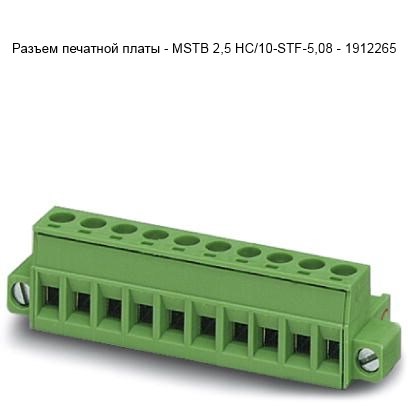 | 365412 | 1912265 | MSTB 2,5 HC/10-STF-5,08 | Разъемы для печатной платы, MSTB 2,5 HC/..-STF, Винтовой зажим с натяжной гильзой, Размер шага: 5,08 мм | 10 | 60,2 | 18,2 | Заказать |