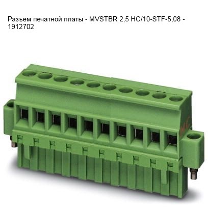 | 365445 | 1912485 | MVSTBR 2,5 HC/10-ST-5,08 | Разъемы для печатной платы, MVSTBR 2,5 HC/..-ST, Винтовой зажим с натяжной гильзой, Размер шага: 5,08 мм | 10 | 50,8 | Заказать |