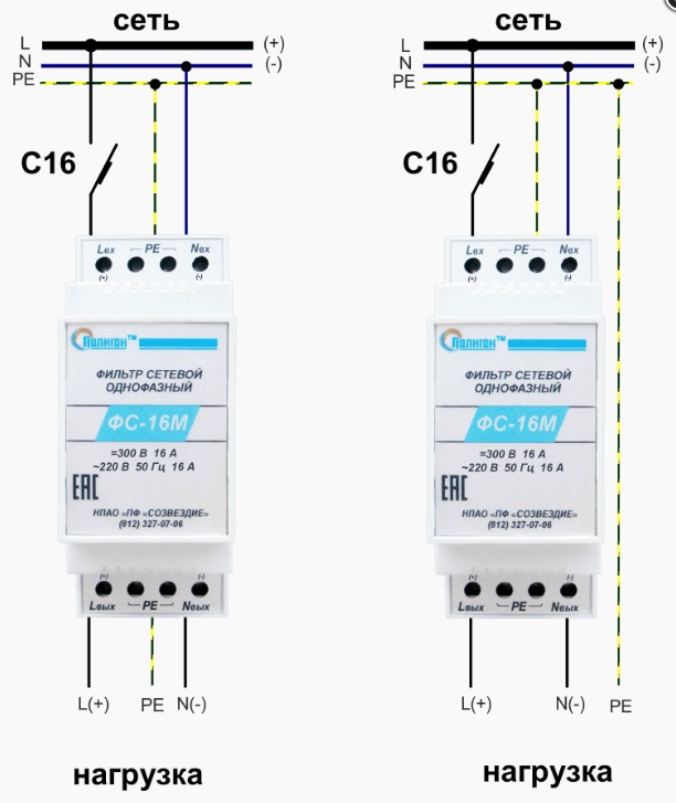 Фильтр ФС-16М выполнен в корпусе, предназначенном для установки на DIN-планку 35 мм.