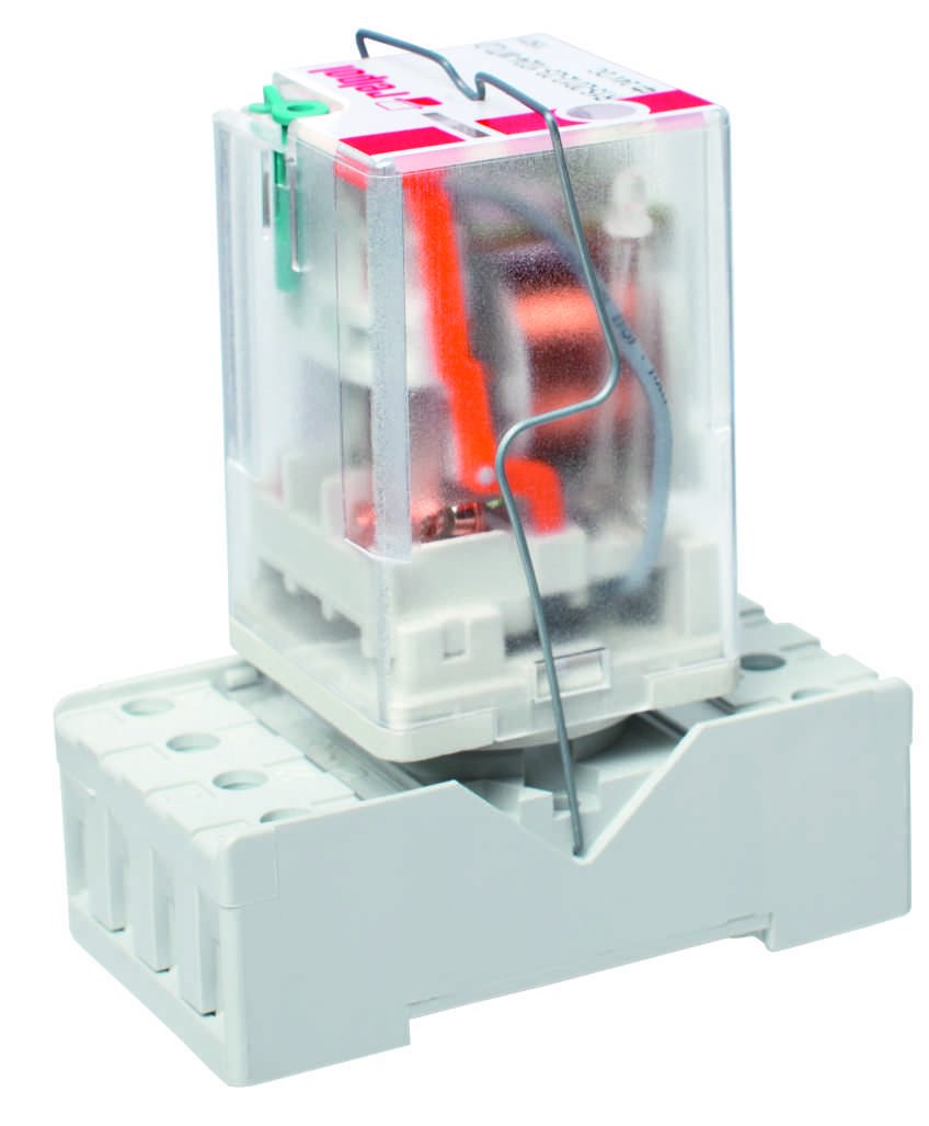 | 349562 | 804571 | R15-2012-23-5048-WTL | Электромагнитное реле, промышленное - малогабаритное, к розетке. Ширина 35 мм. Выход: 2P - два переключающих контакта - выходы: 11 (1), 12 (4), 14 (3); 21 (8), 22 (5), 24 (6); AC1 - 10A/250В; DC1 - 10A/24В. Вход / катушка - контакты: A1 (2) - A2 (7), напряжение питания Un - 48 V AC. Индикатор механической работы W, контрольная кнопка T - с функцией блокировки контактов, красный светодиодный индикатор L. Размеры: 35 x 35 x 54,4 мм. IP 40. Материал контакта: AgNi. | Заказать |
