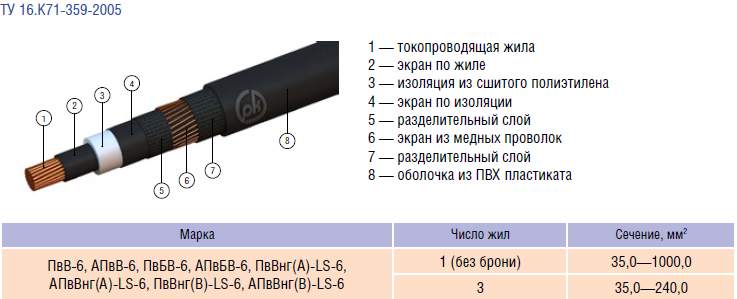 | 125 | АПвВ-6 | кабель силовой одножильные или трехжильные с алюминиевыми жилами, с изоляцией из сшитого полиэтилена, в оболочке из поливинилхлоридного пластиката. | Заказать |