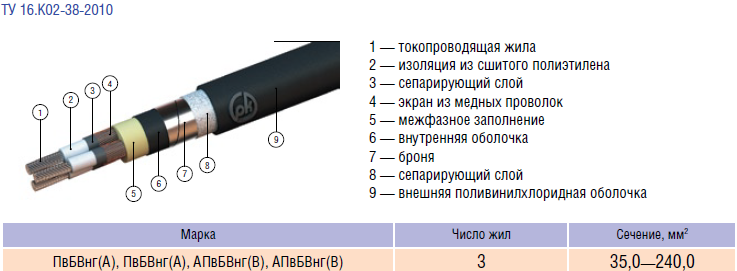 | 172 | ПвБВнг(А) | кабель силовой трехжильные с медными жилами, с изоляцией из сшитого полиэтилена, в оболочке из поливинилхлоридного пластиката, бронированные, не распространяющие горение, на напряжение 6, 10, 20 и 35 кВ. Предел распространения горения ПРГП1. | Заказать |