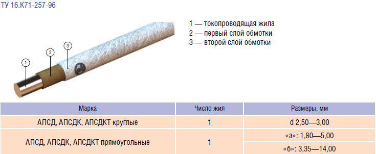 | 448 | АПСД | провод алюминиевый, изолированный двумя слоями обмотки из стеклянных нитей, с подклейкой и пропиткой нагревостойким лаком. | Заказать |