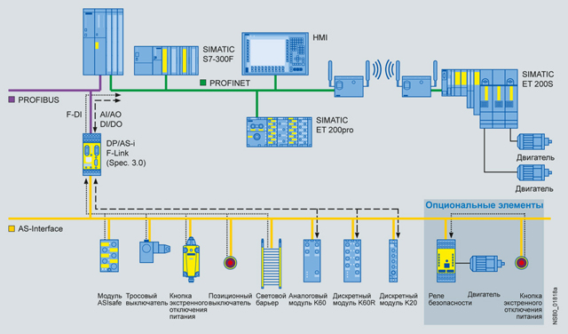 Конфигурация 2: Интеграция в PROFINET сети под SIMATIC F ПЛК (SIMATIC S7-315 F PN/DP, S7-317 F PN/DP или S7-416F-3 PN/DP)