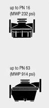 For pressure level PN 25, PN 40 and PN 63 (MWP 363 psi, 580 psi and 914 psi)