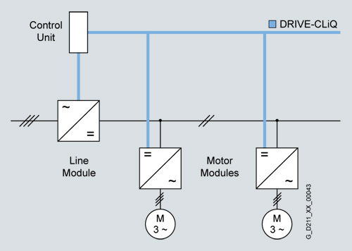 Все компоненты SINAMICS S120, включая двигатели и датчики, соединены друг с другом через общий