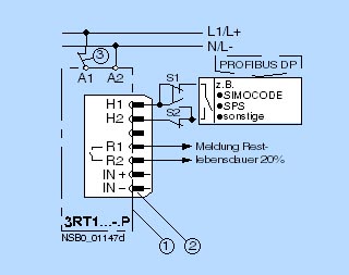 через клеммы H1/H2. Нагрузка контакта: U s/приблизит. 5 mA. Когда управление осуществляется от SIMOCODE-DP, также обеспечивается управление по PROFIBUS DP.