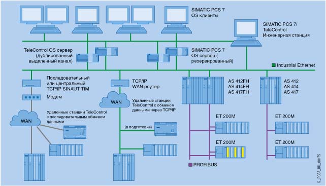 SIMATIC PCS 7 TeleControl может быть использован вместе с SIMATIC PCS 7 V7.