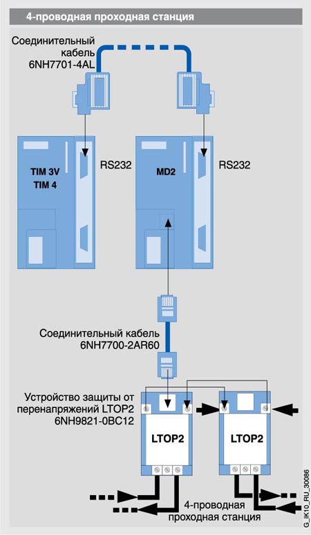 Подключение MD2 к модулю TIM через RS 232, 4-проводное промежуточное подключение
