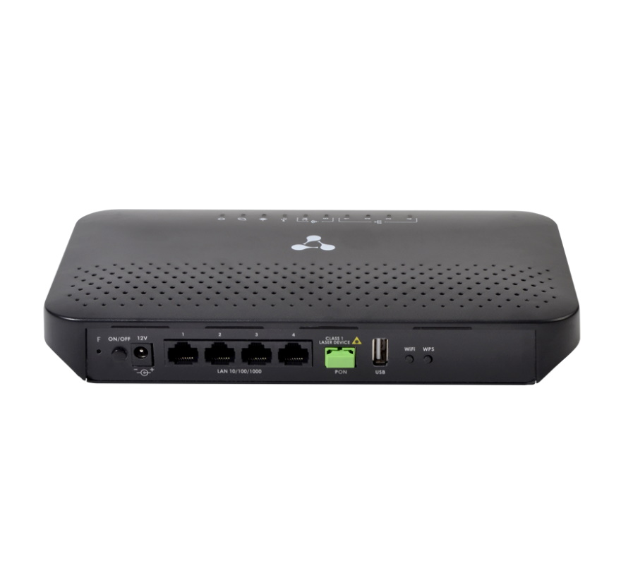 Абонентский маршрутизатор: 1 порт GPON и 4 порта Ethernet 10/100/1000 Base-T(RJ-45). 2 порта FXS, 1 порт USB, два приемо-передатчика Wi-Fi IEEE 802.11b/g/n и RF-разъем (CaTV)