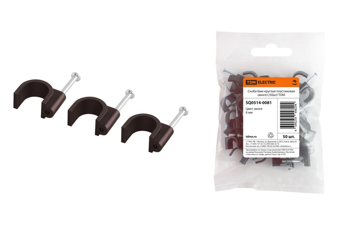 Скоба 6мм круглая пластиковая (венге) (50шт) TDM