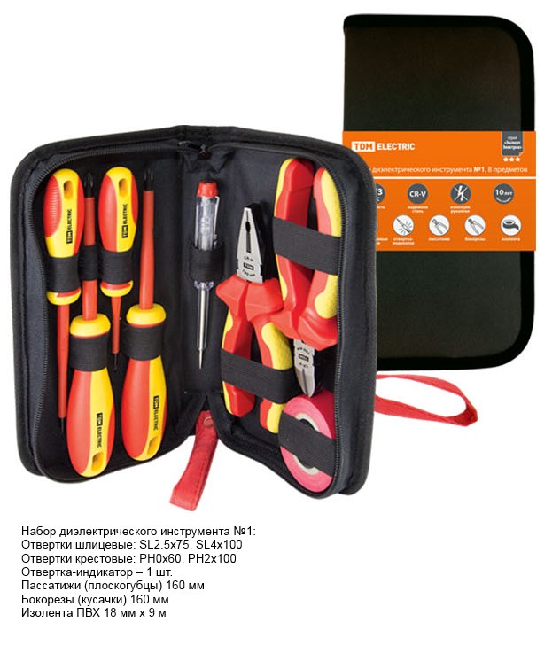 | 348321 | SQ1017-0101 | Набор диэлектрического инструмента №1, тканевый пенал, 8 предметов, 1000 В, “ЭкспертЭлектрик” TDM | Заказать |
