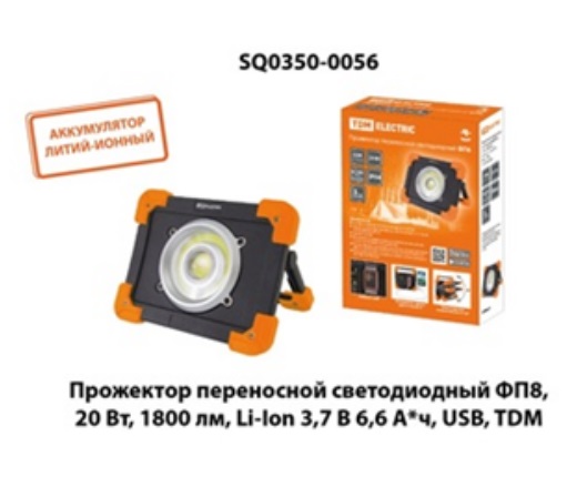 | 372831 | SQ0350-0056 | Прожектор переносной светодиодный ФП6, 20 Вт, 1800 лм, Li-Ion 3,7 B 6,6 A*ч, USB, TDM | Заказать |