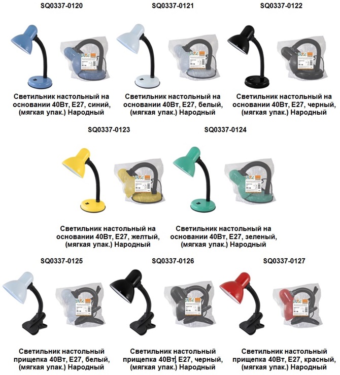 | 379831 | SQ0337-0126 | Светильник настольный прищепка 40Вт, E27, черный, (мягкая упак.) Народный | Заказать |