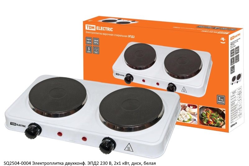 | 398722 | SQ2504-0004 | Электроплитка двухконф. ЭПД2 230 В, 2х1 кВт, диск, белая, TDM | Заказать |