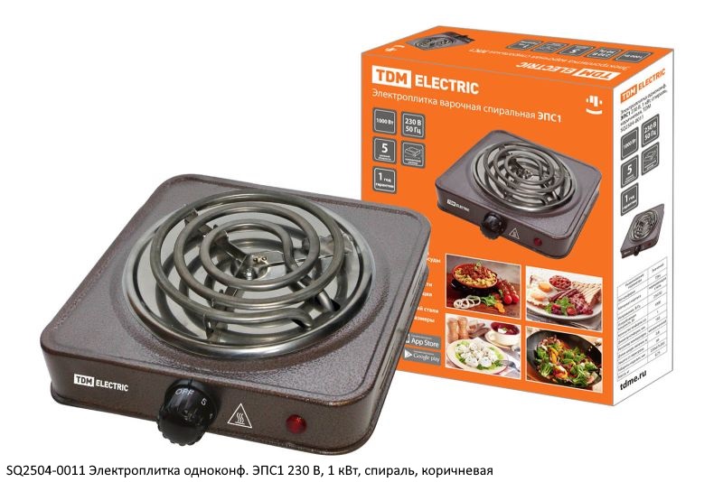 | 398726 | SQ2504-0011 | Электроплитка одноконф. ЭПС1 230 В, 1 кВт, спираль, коричневая, TDM | Заказать |